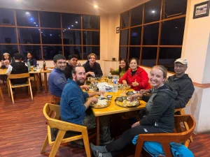 Day 1 began early, with the group setting out from Kathmandu to Sundarijal, where the trail into the Shivapuri–Nagarjun National Park awaited. Passing forest steps and the pipeline route, the team trekked steadily uphill to Mulkharka, pausing for lunch and local tea before continuing toward Lama Gaun (Lumo Karmo). After nearly five hours on foot, they arrived at Lumo Karmo Resort, nestled amid serene hills, and spent the evening sharing stories over dinner, a calm prelude to the adventure ahead.